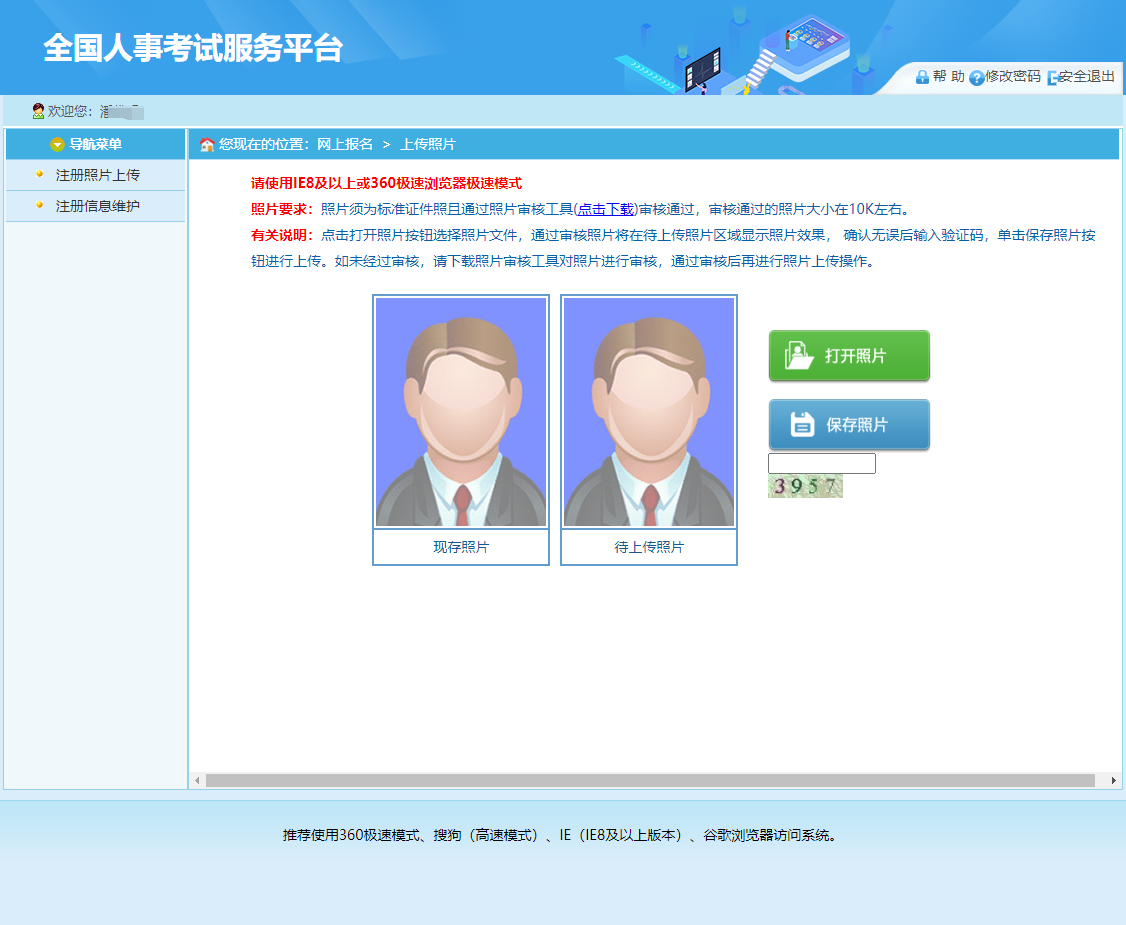 第四步:上傳報(bào)名照片(注:需要用電腦端下載照片處理工具,對照片進(jìn)行審核,準(zhǔn)備好一張紅藍(lán)白底證件照,進(jìn)入照片審核處理工具進(jìn)行處理,完成之后用處理好的照片在此頁面上傳)