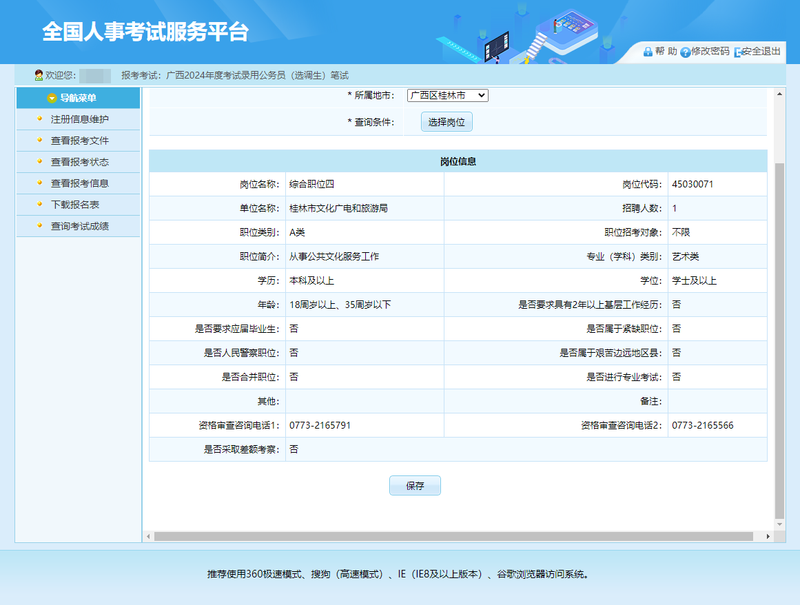 第七步:考生報(bào)名選擇報(bào)考地市及崗位