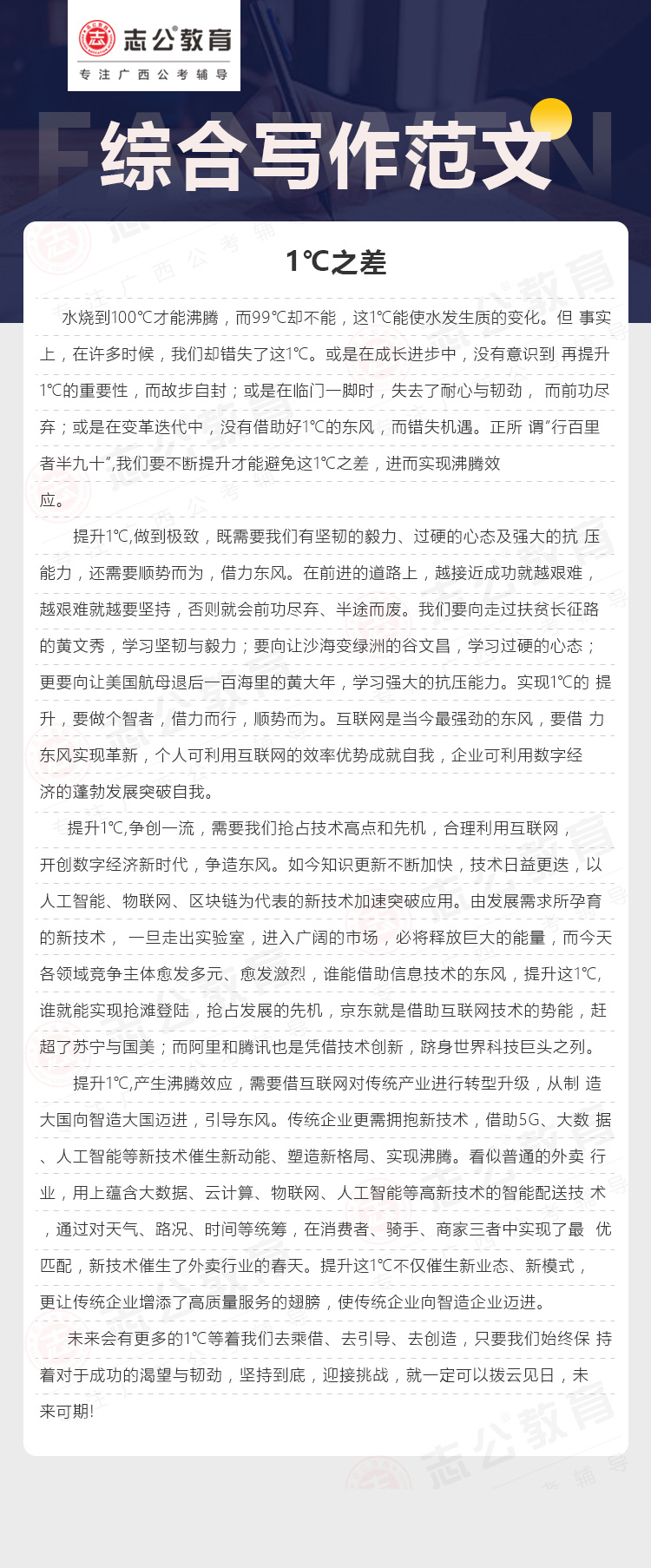 綜合寫作范文六:1℃之差