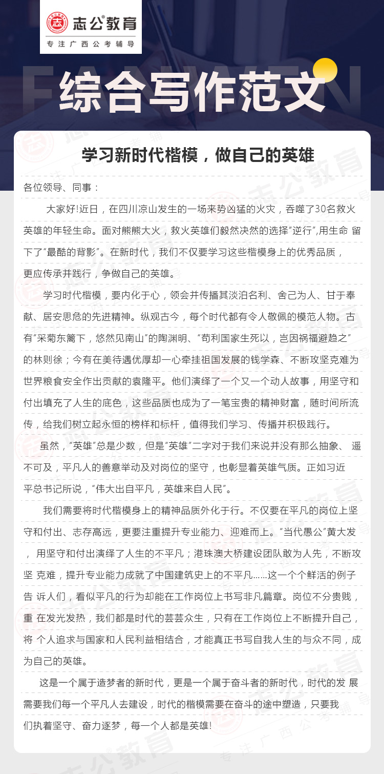 綜合寫作范文七:學習新時代楷模,做自己的英雄