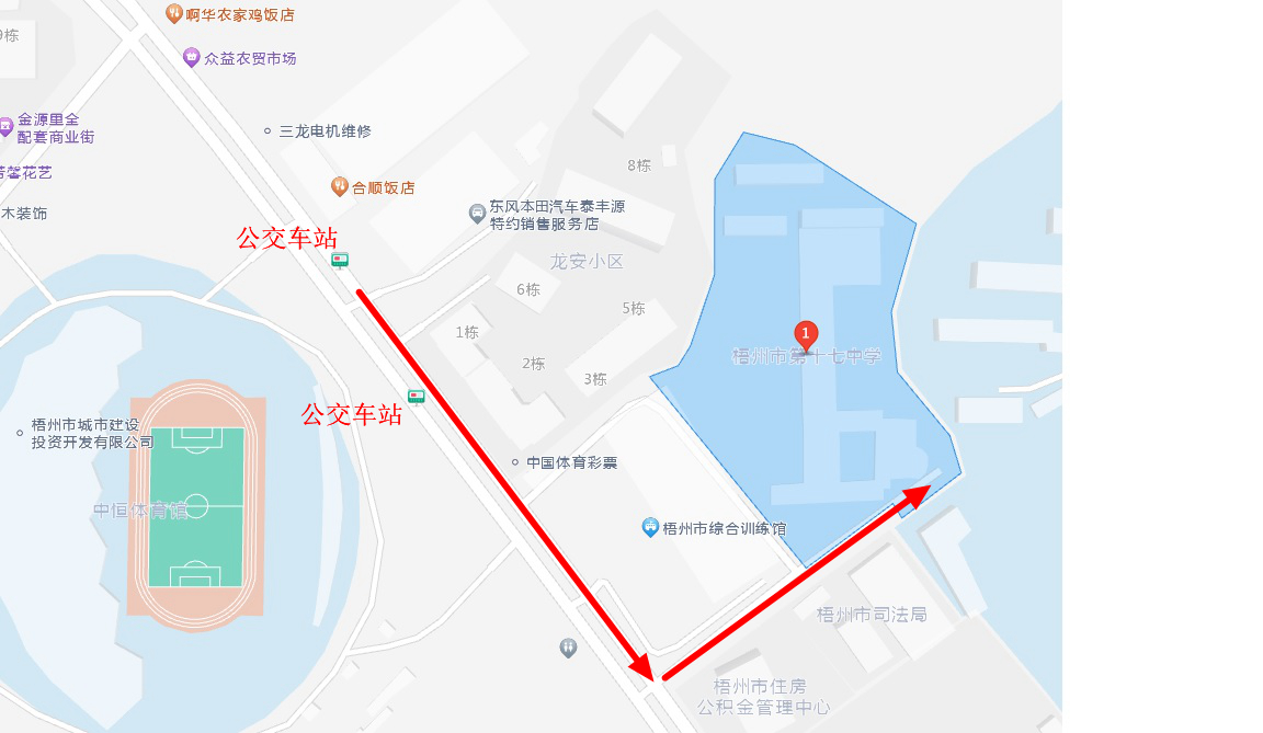 公交車參考:10路、32路、49路、49路延長(zhǎng)線、蒼梧城鄉(xiāng)6路。進(jìn)入梧州學(xué)院校區(qū)統(tǒng)一在東大門進(jìn)入,考點(diǎn)門口處于交通干道,送考車輛只能在東門外短暫停留,南門及其他門不得進(jìn)入無法核驗(yàn)考生身份。