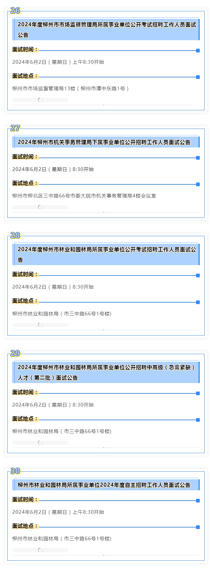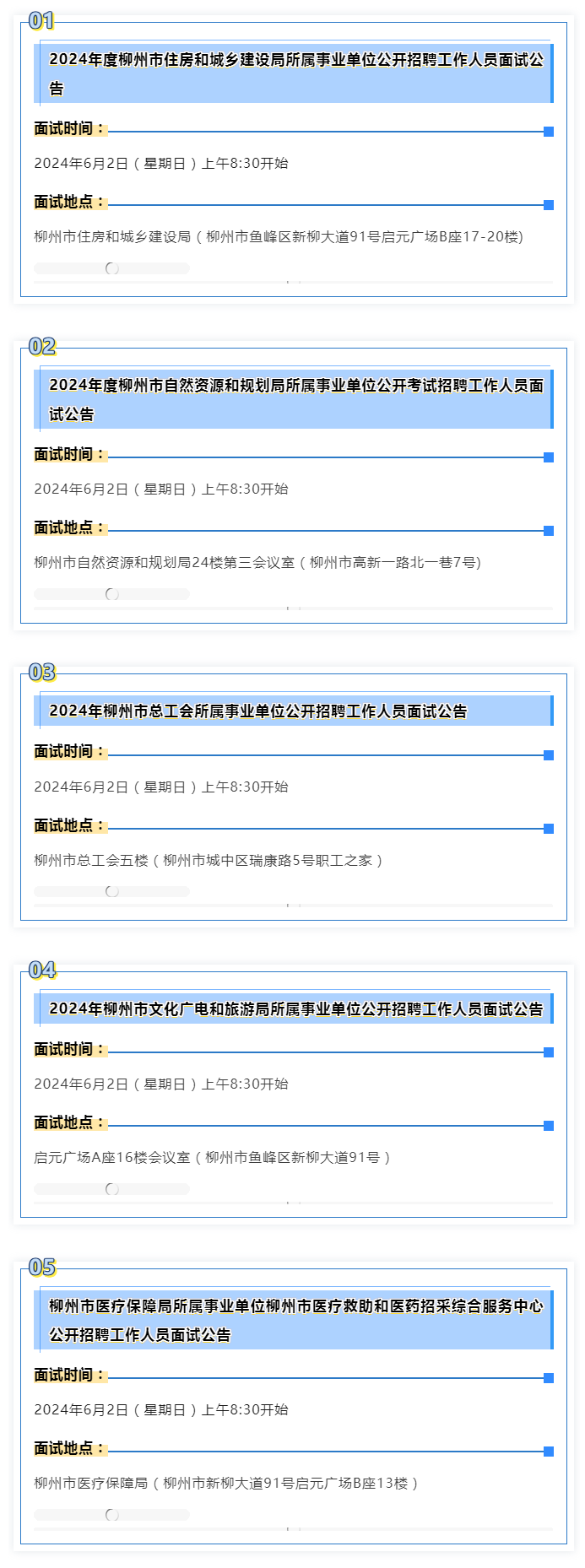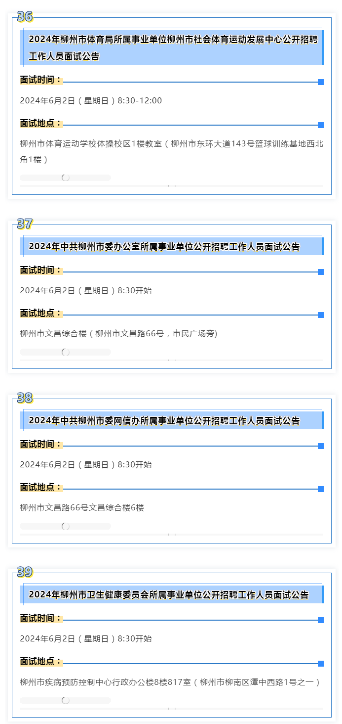 2024年度柳州市事業(yè)單位面試 本周末啟動