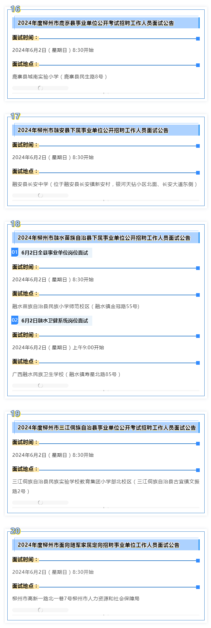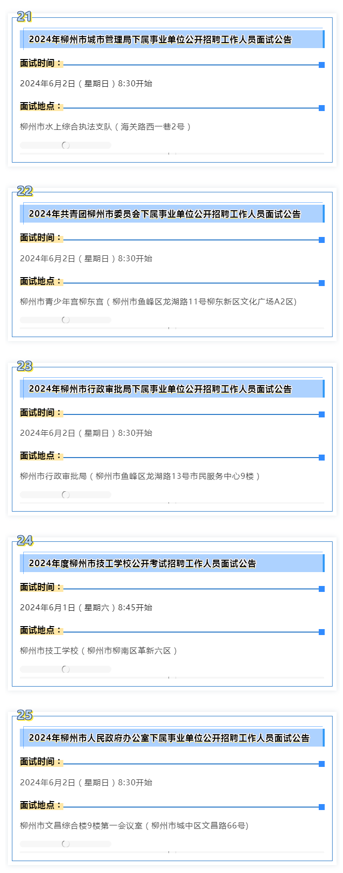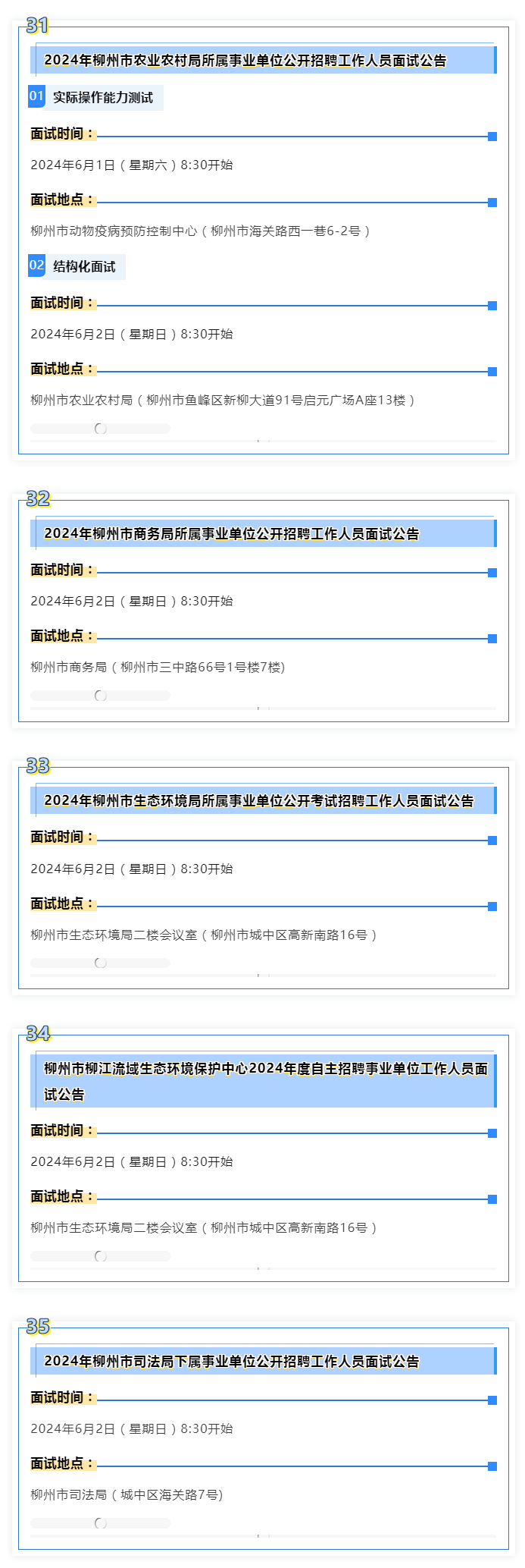 2024年度柳州市事業(yè)單位面試 本周末啟動