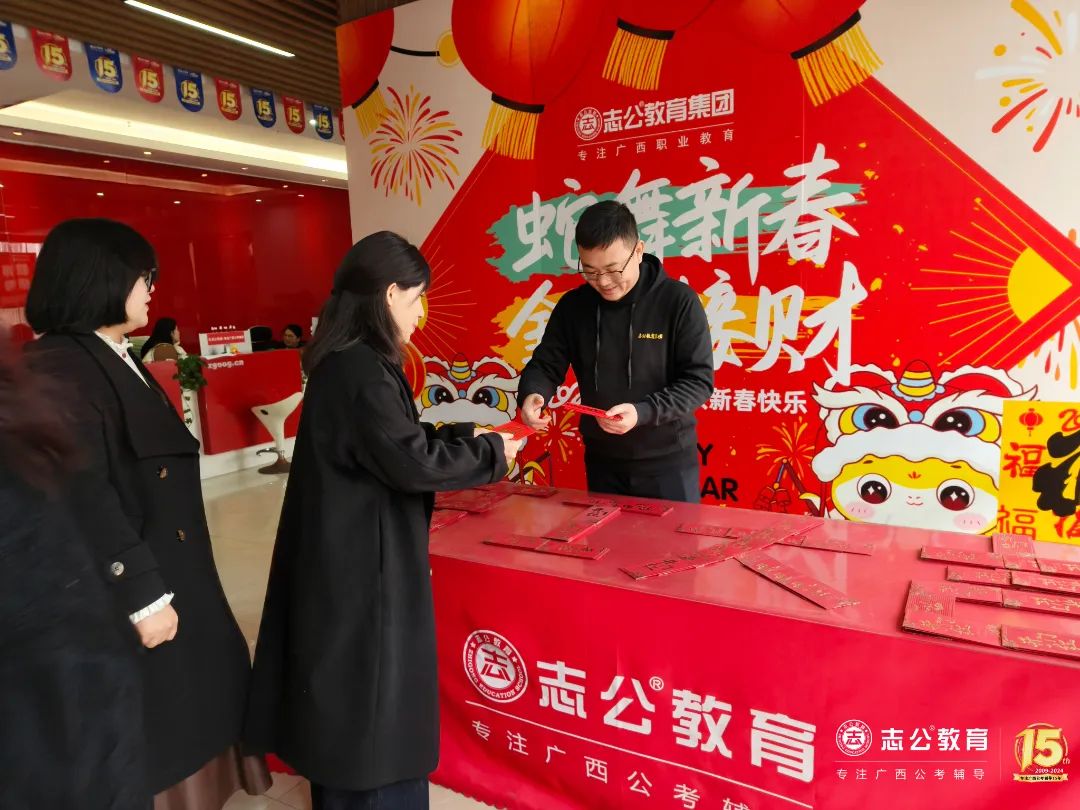 春節(jié)的喜慶氣氛猶在,而我們的心中早已裝滿了對未來的憧憬和期待。在未來的日子里,志公教育集團(tuán)將一如既往地秉承12條企業(yè)核心價(jià)值觀,為廣西公職教育提供良好的產(chǎn)品和服務(wù),實(shí)現(xiàn)企業(yè)使命——幫助人才實(shí)現(xiàn)更高質(zhì)量的就業(yè),為員工創(chuàng)造最具幸福感的企業(yè),用教育成就夢想!相信在全體員工的共同努力下,志公教育一定能夠開創(chuàng)更加輝煌的未來![]()