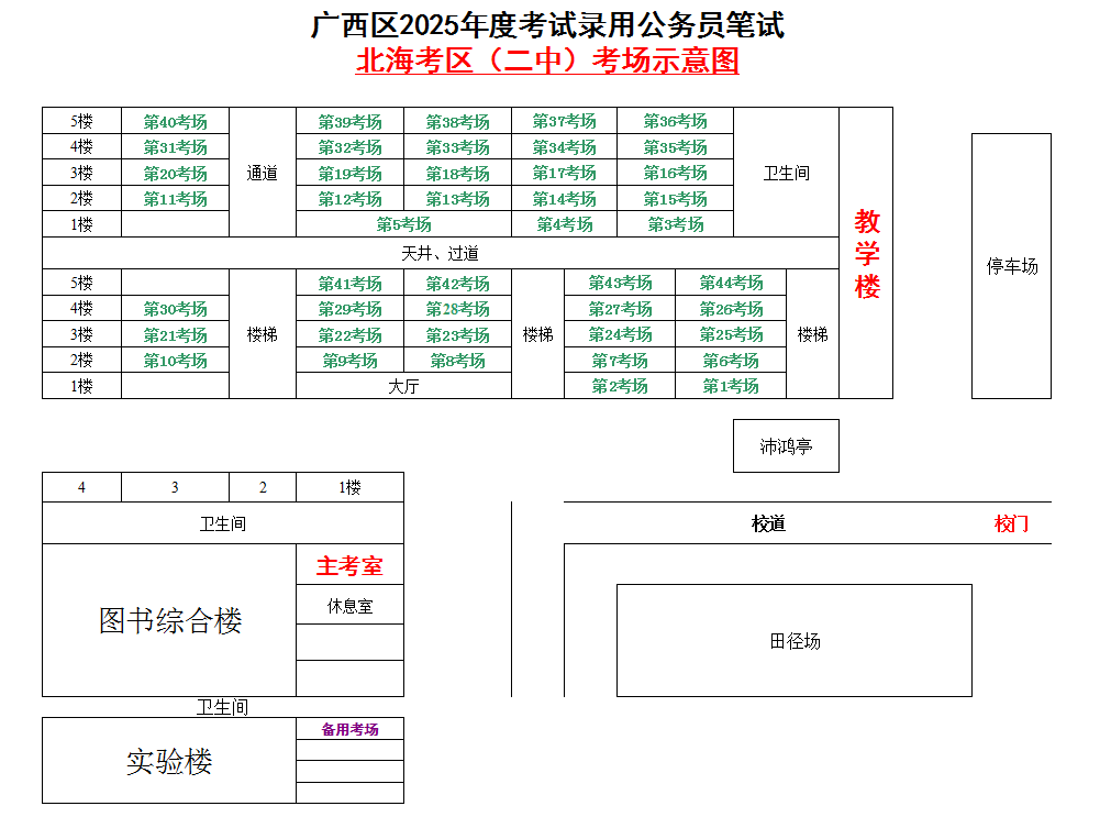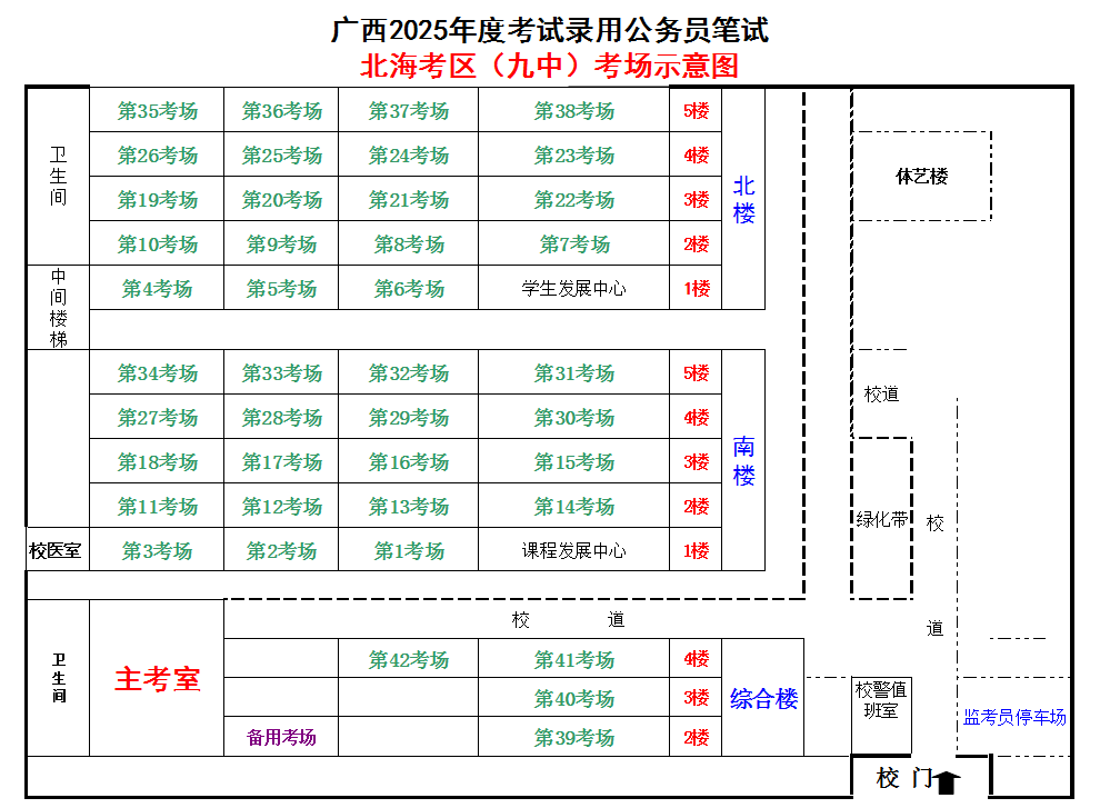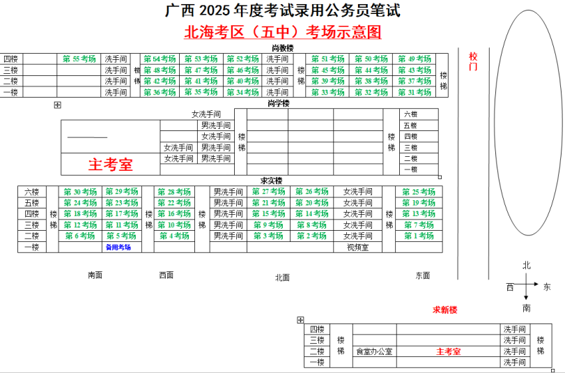 北??紖^(qū)共設(shè)置5個考點(diǎn),具體考點(diǎn)考場布置分別如下: