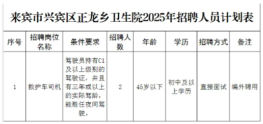 2025年廣西來(lái)賓市興賓區(qū)正龍鄉(xiāng)衛(wèi)生院公開(kāi)招聘編外人員2人