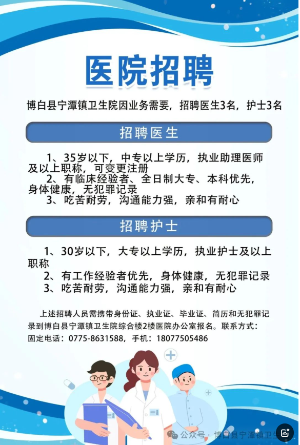 原文標題:博白縣寧潭鎮(zhèn)衛(wèi)生院誠聘英才
