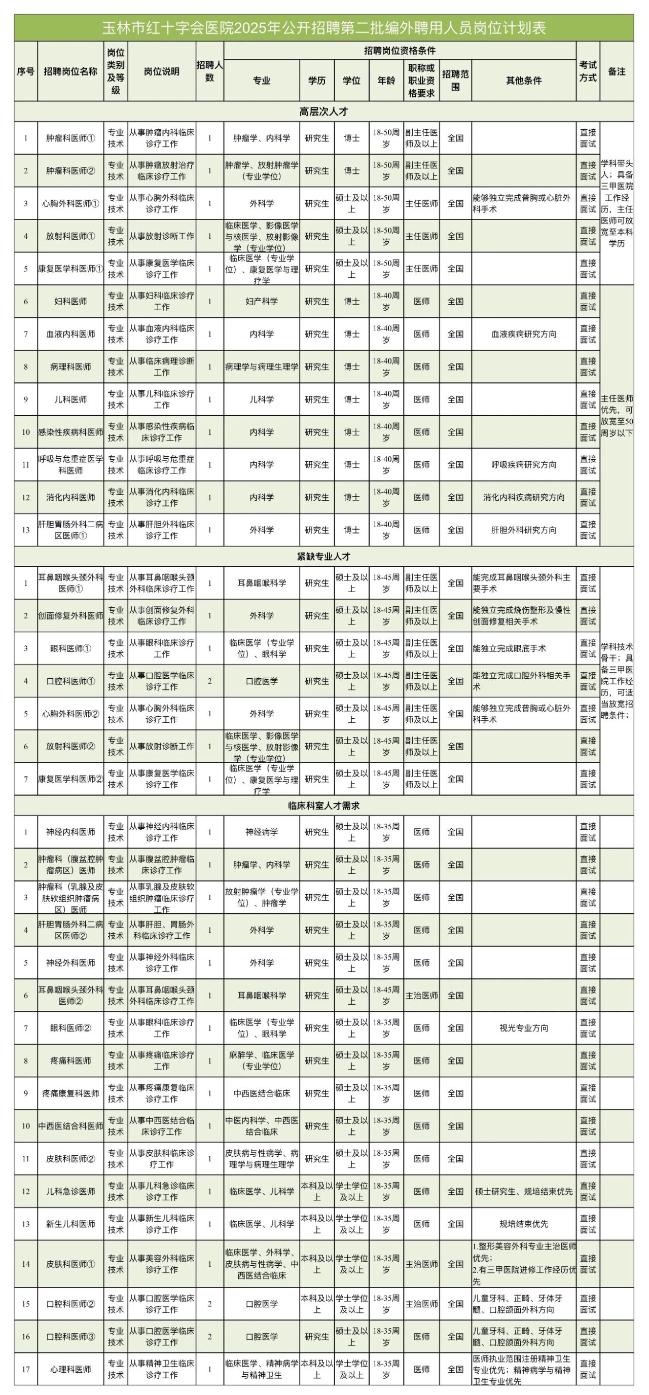 4.醫(yī)師人員:采取直接面試進行考核,醫(yī)院統(tǒng)一安排集體面試;面試考核內(nèi)容包括專業(yè)知識、學(xué)術(shù)水平、學(xué)習(xí)和業(yè)務(wù)能力、組織協(xié)調(diào)能力、職業(yè)性格傾向、語言表達能力、興趣愛好和特長等。
