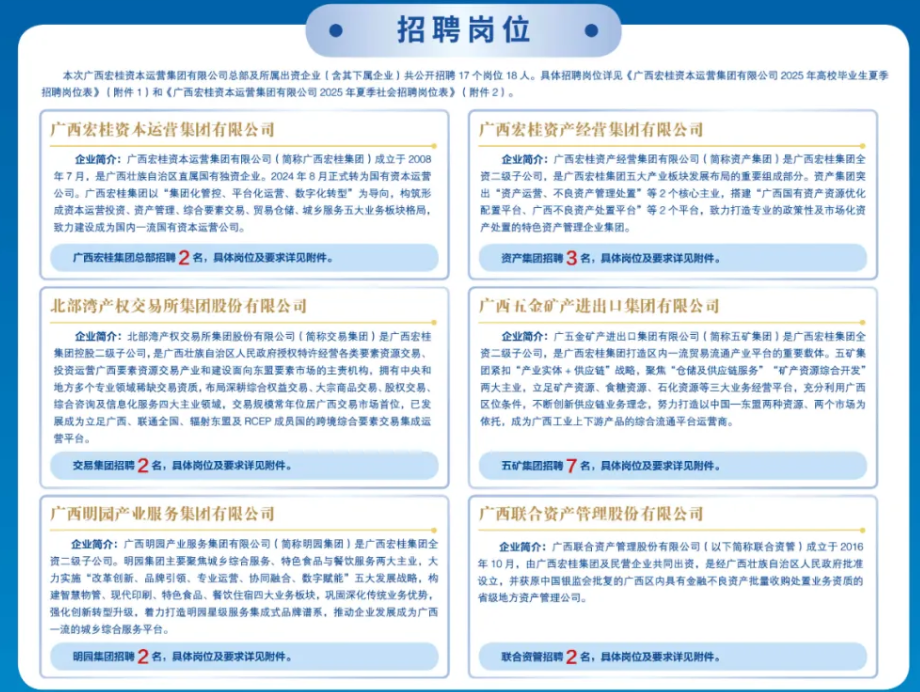 原文標(biāo)題:廣西宏桂資本運(yùn)營集團(tuán)有限公司2025年夏季招聘啟事