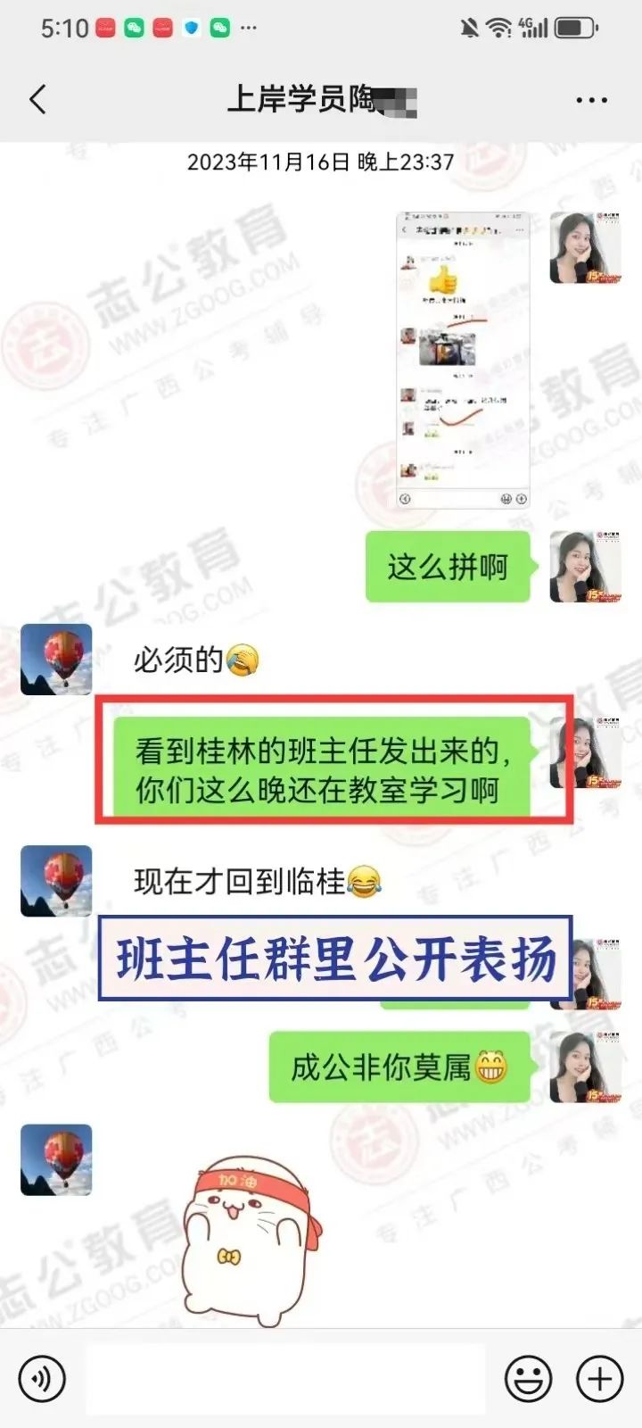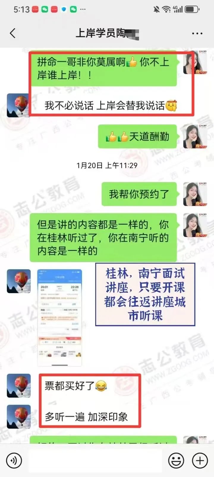 2023年,臨近研究生畢業(yè)時(shí),一次偶然的機(jī)會,他得知同學(xué)的愛人也就是我,在我們志公教育任教。加我微信后跟我了解到我們志公有一個(gè)非常適合他的畢業(yè)成公課程,也了解到我們是一家優(yōu)秀的公考培訓(xùn)機(jī)構(gòu)后,8月他毫不猶豫地報(bào)了我們的畢業(yè)成功班。從那以后,他一邊上學(xué)一邊培訓(xùn),常常學(xué)習(xí)到深夜。2024年國考,他進(jìn)面了,聯(lián)系了我升級面試班,但未能成功上岸。不過他沒有絲毫氣餒,迅速調(diào)整心態(tài),繼續(xù)征戰(zhàn)農(nóng)信社和選調(diào)生。