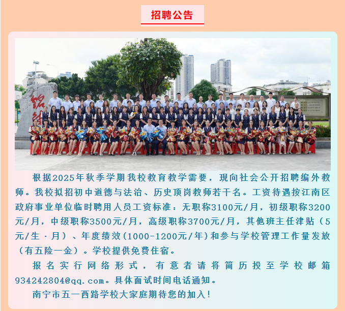 原文標題:快報名!南寧市五一西路學校招聘老師啦!