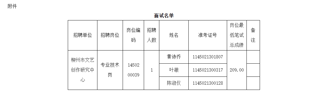 根據(jù)《廣西壯族自治區(qū)事業(yè)單位公開招聘人員實施辦法》(桂人社發(fā)〔2011〕155號)、《廣西壯族自治區(qū)人力資源和社會保障廳關于印發(fā)廣西2025年度上半年事業(yè)單位統(tǒng)一公開招聘工作實施方案的通知》(桂人社發(fā)〔2025〕3號)、《柳州市2025年度上半年事業(yè)單位公開考試招聘工作人員公告》等文件精神,柳州市文聯(lián)擬組織所屬事業(yè)單位柳州市文藝創(chuàng)作研究中心公招面試工作,現(xiàn)將相關事宜公告如下: