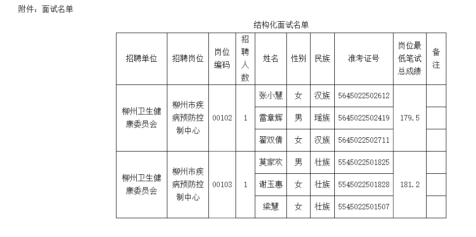 附件:《2025年柳州市衛(wèi)生健康委員會下屬事業(yè)單位公開招聘工作人員面試人員名單》