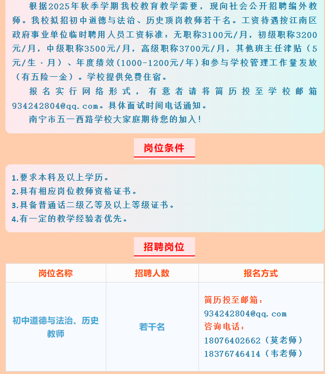 原文標(biāo)題:快報(bào)名!南寧市五一西路學(xué)校招聘老師啦!