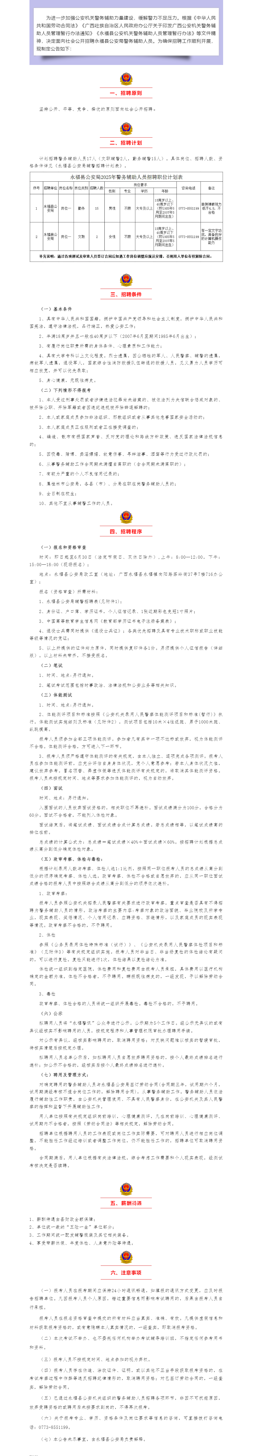2025年桂林市永福縣公安局公開招聘警務(wù)輔助人員若干名