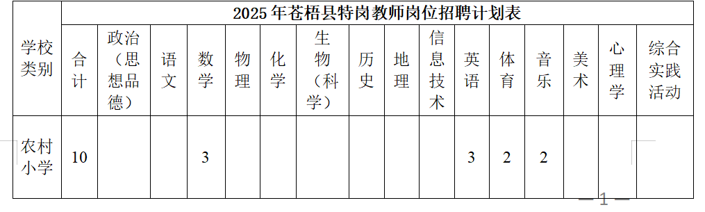 經(jīng)自治區(qū)教育廳、財政廳、人社廳批準,今年我縣農(nóng)村義務教育階段學校教師特設(shè)崗位計劃(以下簡稱“義教特崗”)10名,其中小學崗位10名(詳情見下表)。