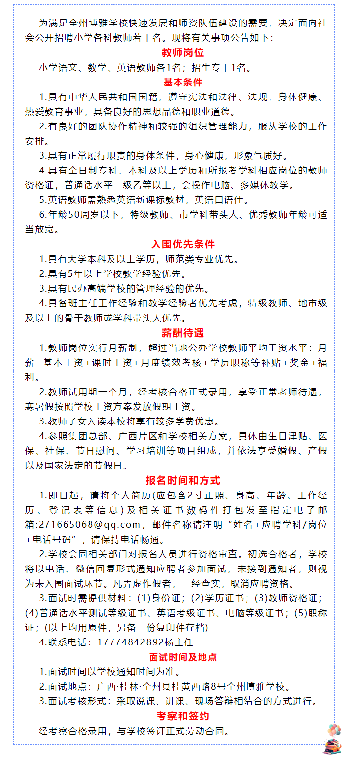 全州博雅學校面向全國誠聘教育精英若干人
