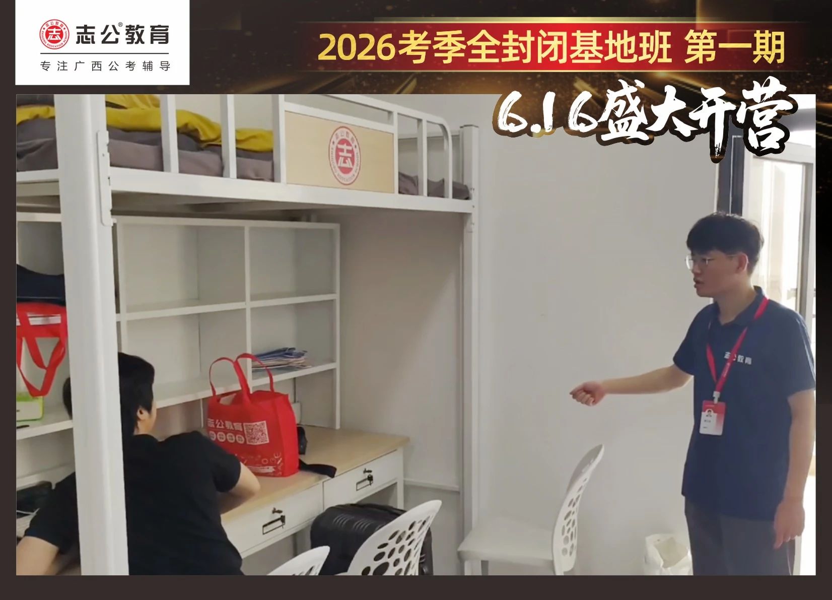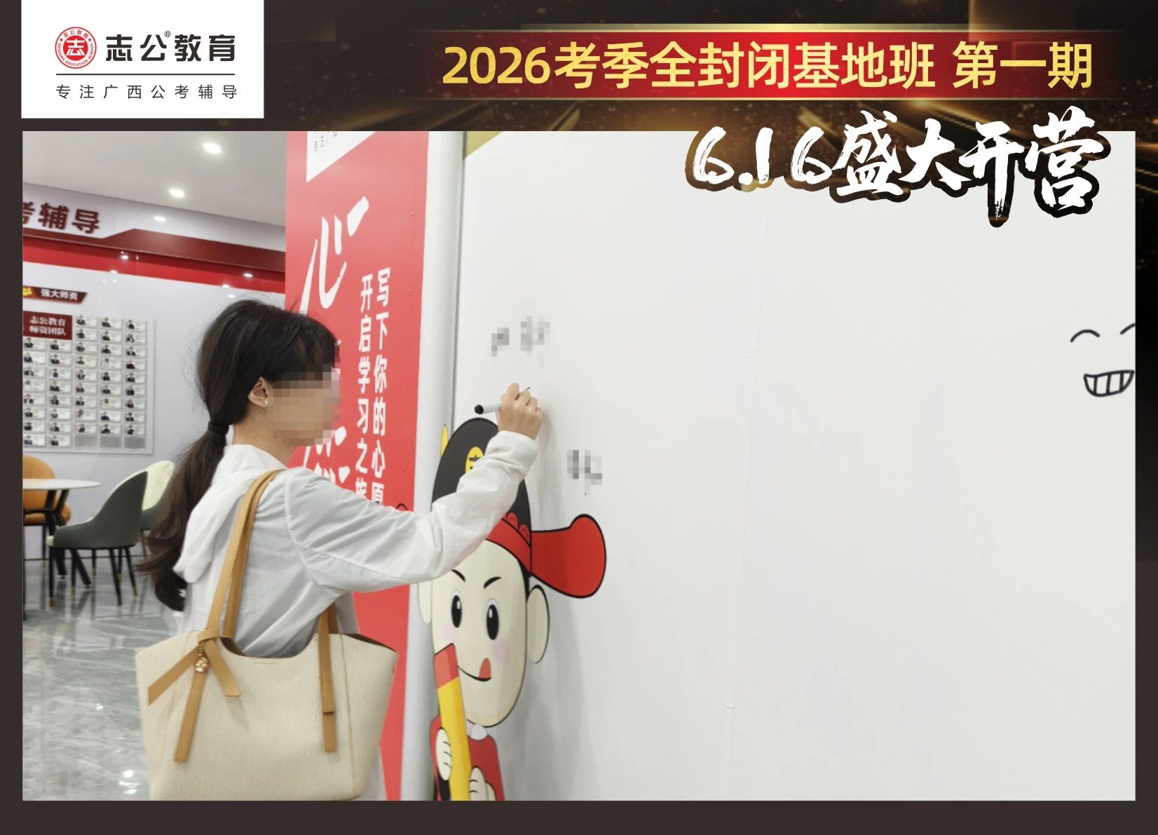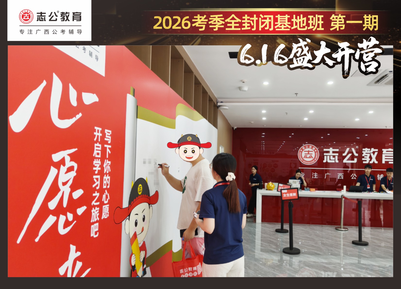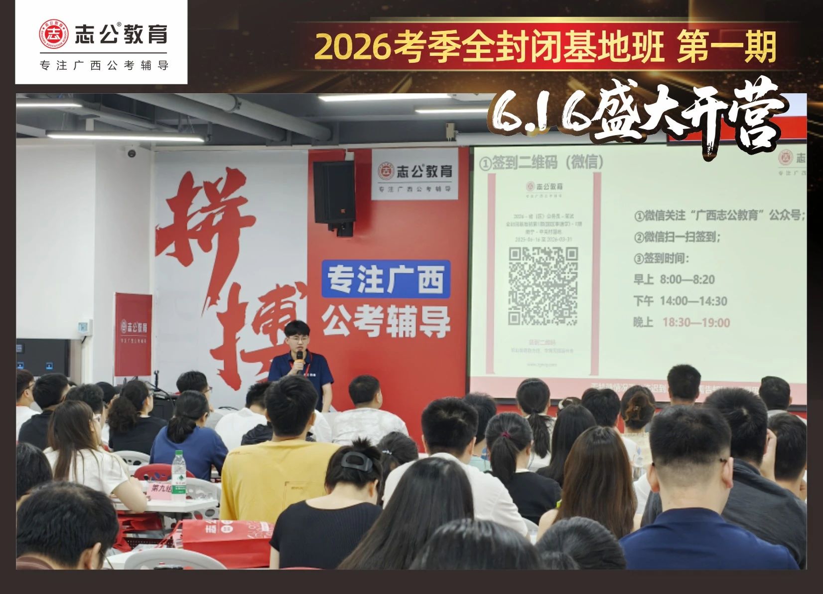由于這段時(shí)間受臺風(fēng)影響,南寧迎來下雨天,但學(xué)員們滿懷先一步備考,快一步成功圓夢的滿滿炙熱信心,早早就在志公教育(中關(guān)村)全封閉基地前臺等候,6月16日,志公教育26考季全封閉基地班第1期的學(xué)員們齊聚一堂,正式開啟他們的公考備戰(zhàn)之旅。簽到環(huán)節(jié)作為基地班課程的第一站,不僅是對學(xué)員們的歡迎儀式,更是他們邁向夢想的第一步。