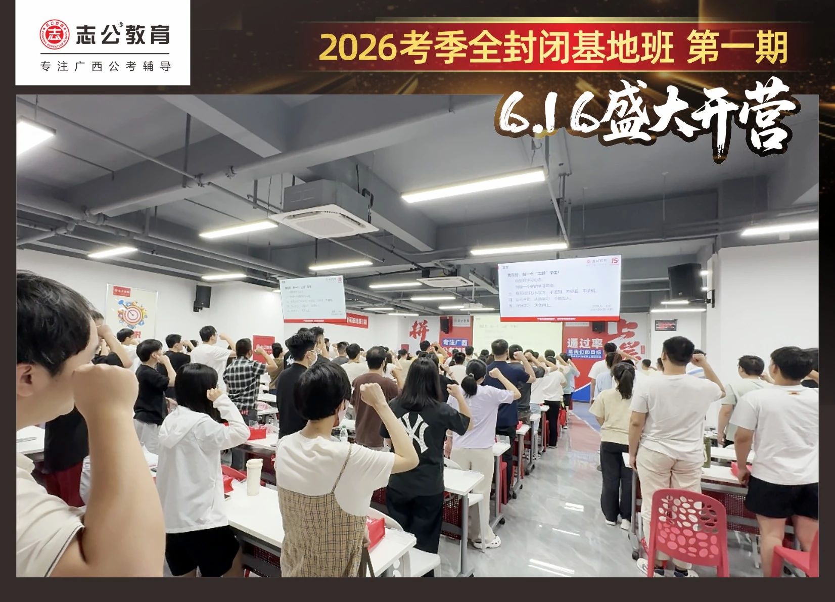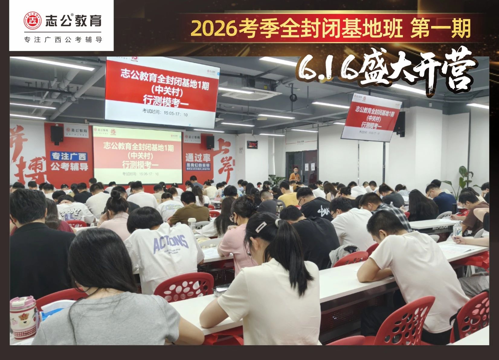 大家稍作休息之后,就是咱們期待已久的開班典禮啦!學(xué)員們在班主任的引導(dǎo)下分組就坐。大家目光灼灼,熱情高漲,迫不及待想要開啟學(xué)習(xí)模式??催@座無虛席的盛況,志公26考季全封閉基地班第1期課程實(shí)力名不虛傳,各位學(xué)員用飽滿的熱情和積極的態(tài)度迎接此次課程的開展,期待大家能夠完成自己的蛻變和成長!