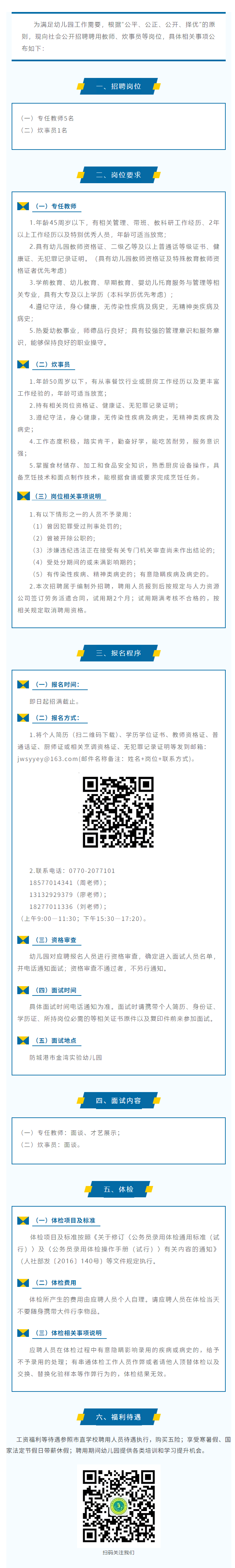 原文標(biāo)題:防城港市金灣實(shí)驗(yàn)幼兒園 2025年秋季學(xué)期聘用教師、炊事員崗位招聘公告