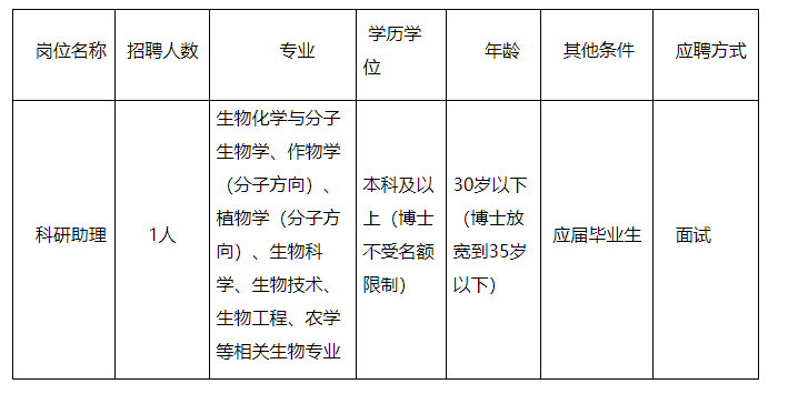 5.可獨立開展科研試驗或撰寫科研論文者,有組織培養(yǎng)和植物遺傳轉化經驗者優(yōu)先;