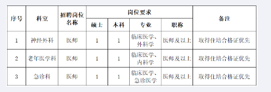 根據(jù)醫(yī)院發(fā)展需要,現(xiàn)面向社會急招神經(jīng)外科、老年醫(yī)學科、急診科醫(yī)師,有關招聘事項公告如下: