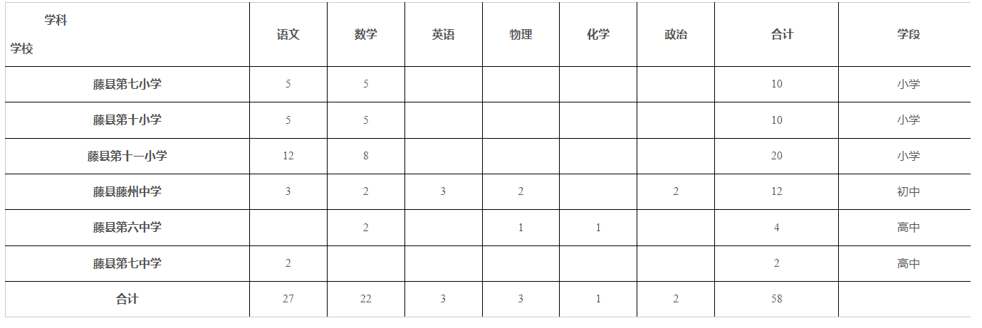 競聘初中教師崗位必須是藤縣鄉(xiāng)村學(xué)校在編在崗的中小學(xué)教師(即不含縣城學(xué)校中小學(xué)教師),具有國民教育大學(xué)本科及以上學(xué)歷,并取得初級中學(xué)及以上教師資格,且勝任應(yīng)聘崗位工作。