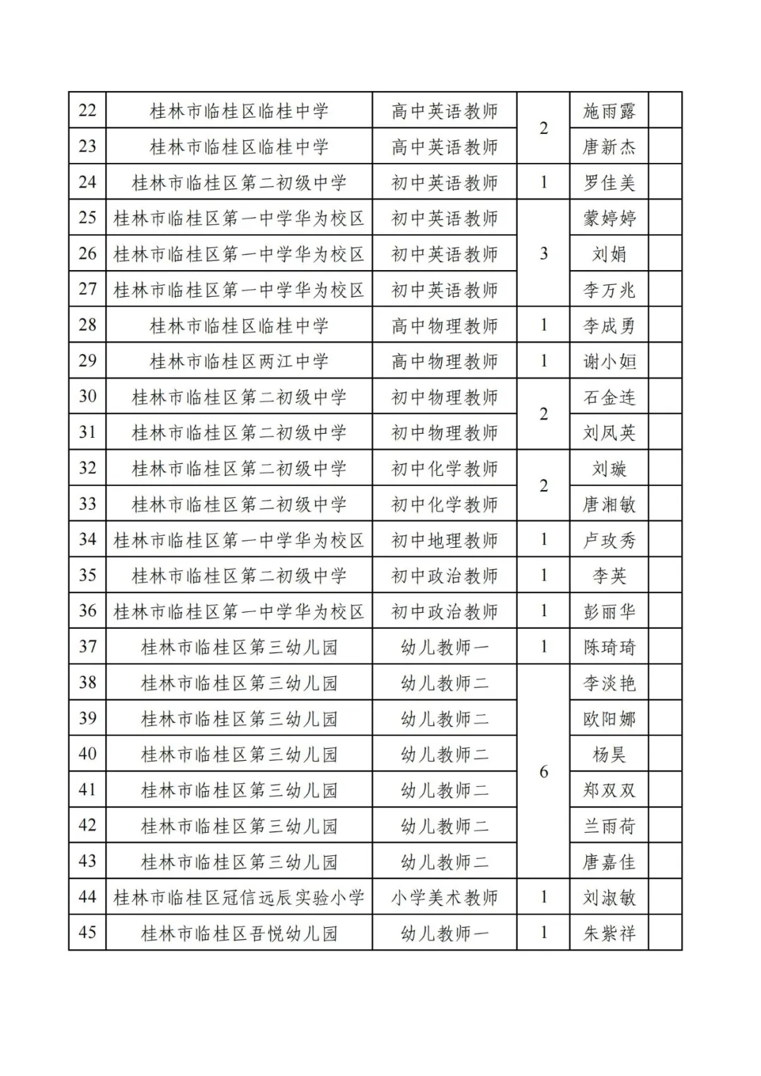 附件:2025年桂林市臨桂區(qū)公開招聘中小學(xué)教師進(jìn)入考核人員名單