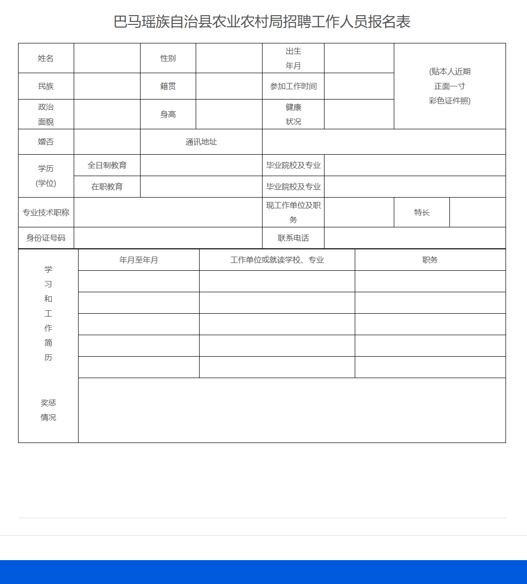 附件:巴馬瑤族自治縣農(nóng)業(yè)農(nóng)村局招聘工作人員報名表