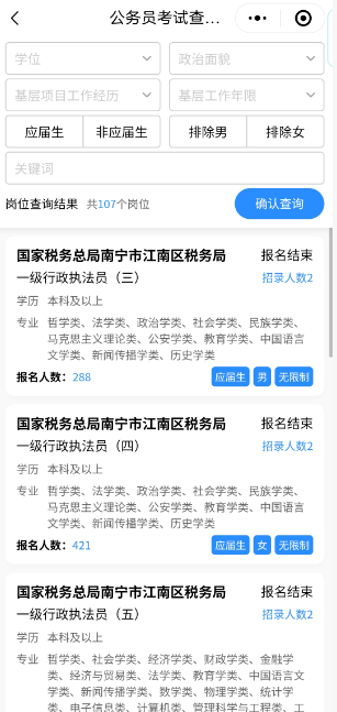 本科、漢語(yǔ)言文學(xué)專業(yè)的考生就可以看見,截止已出崗位,自己有107個(gè)崗位可供挑選。
