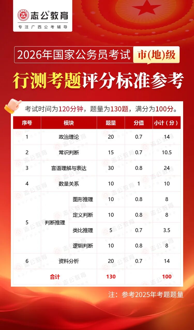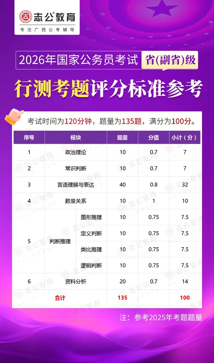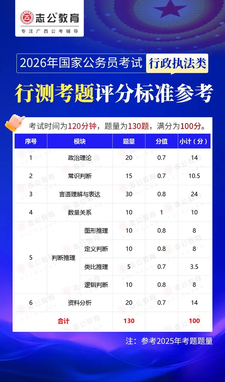 無論報(bào)名人數(shù)是否會(huì)增加,提升自身實(shí)力才是應(yīng)對(duì)2026年國考的關(guān)鍵。行測作為國考公共科目筆試的核心模塊,不僅分值占比高(通常為 100 分),更是考生之間拉開分差的關(guān)鍵戰(zhàn)場。它并非單純考查知識(shí)儲(chǔ)備,而是通過言語理解、判斷推理、數(shù)量關(guān)系、資料分析、常識(shí)判斷、政治理論六大板塊,綜合評(píng)估考生的信息處理速度、邏輯思維能力、應(yīng)急決策水平等綜合素質(zhì)。
