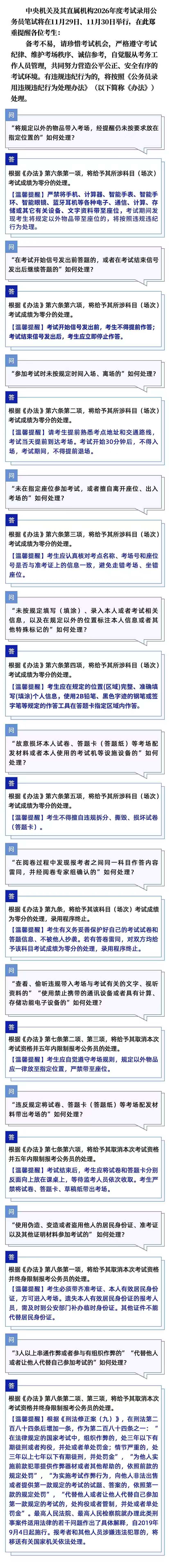 中央機關(guān)及其直屬機構(gòu)2026年度考試錄用公務(wù)員筆試有關(guān)違規(guī)違紀行為處理溫馨提醒