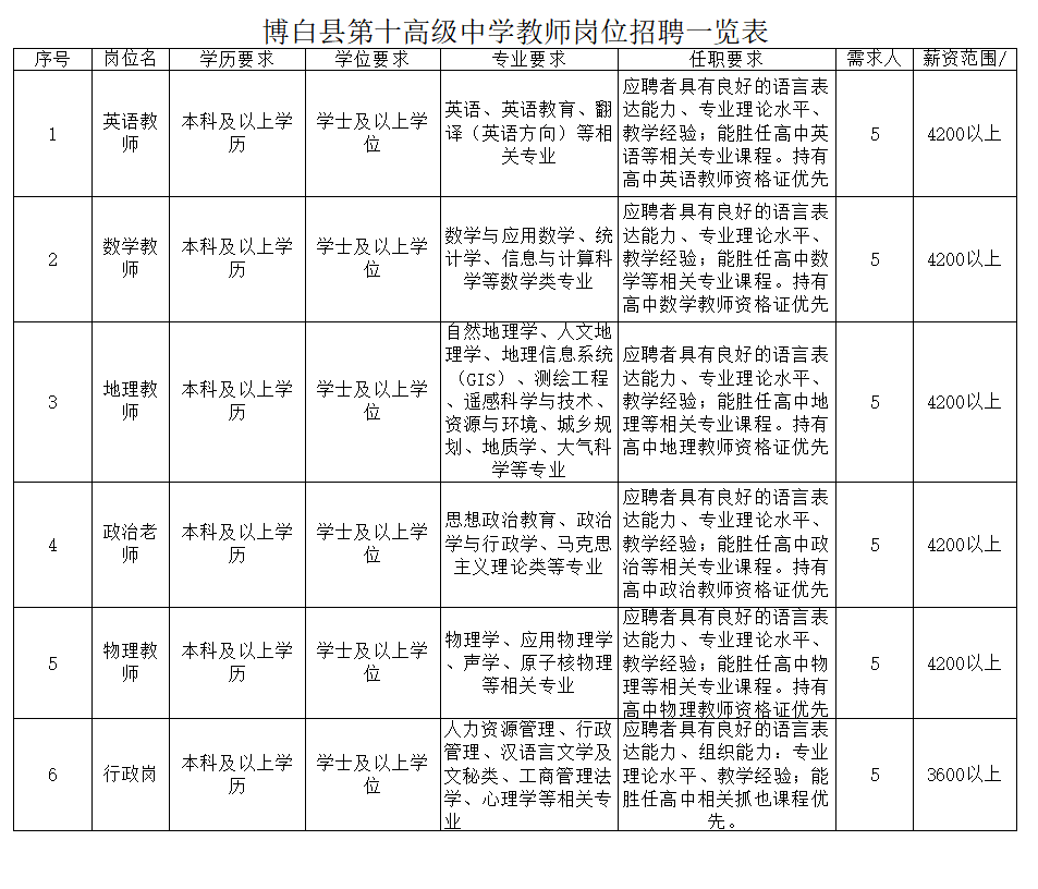 原文標(biāo)題:急聘!急聘英才 共創(chuàng)未來|博白縣第十高級中學(xué)2025年教師招聘啟事