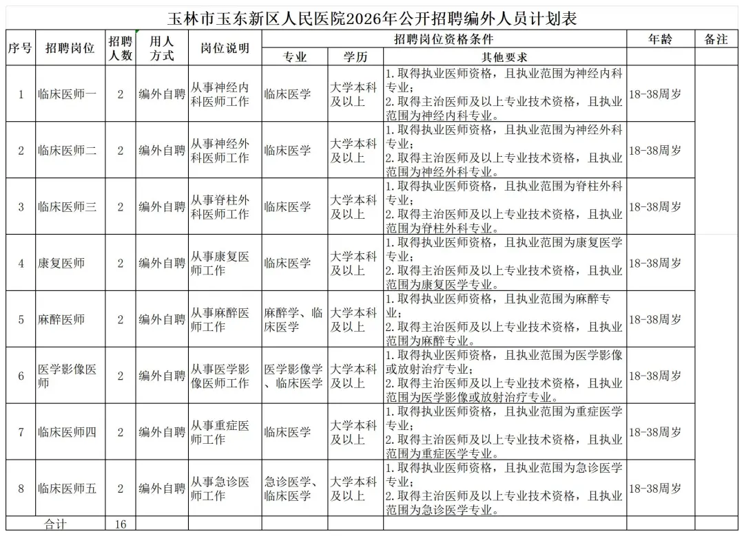 (1)《玉林市玉東新區(qū)人民醫(yī)院2026年公開招聘編外工作人員報(bào)名登記表》(附件),所填寫信息必須真實(shí)無(wú)誤,凡弄虛作假的,一律取消報(bào)名資格;