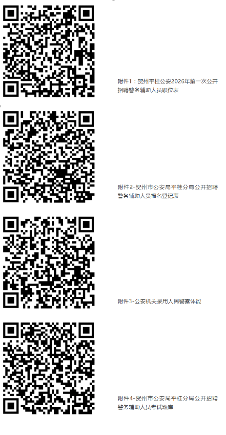 報(bào)考人員自2026年1月26日起,可通過賀州市公共就業(yè)和人才服務(wù)中心“賀州市微就業(yè)”官方微信(gxhzjy)、賀州市公安局平桂分局“平桂警方”官方微信(pggafj)查閱招聘簡(jiǎn)章及《職位計(jì)劃表》(附件1)等相關(guān)招聘信息。