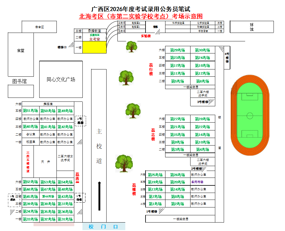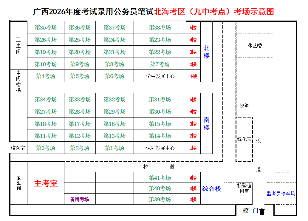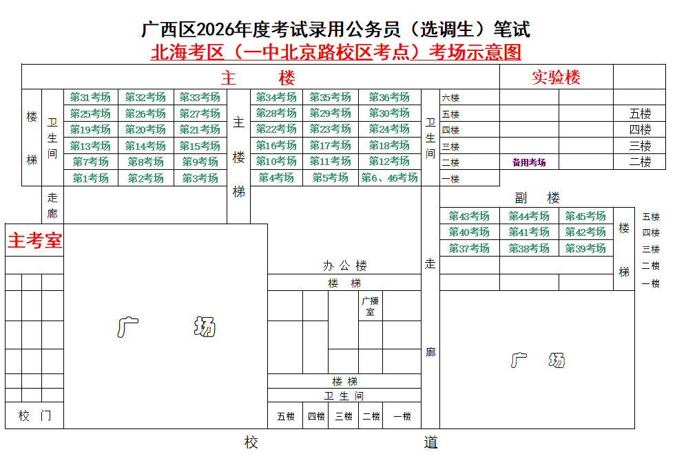 北海考區(qū)共設(shè)置6個考點,具體考點考場布置分別如下: