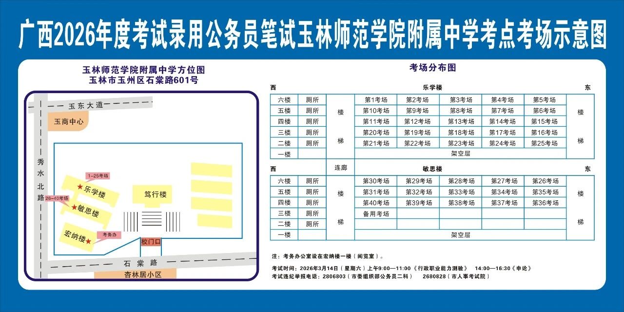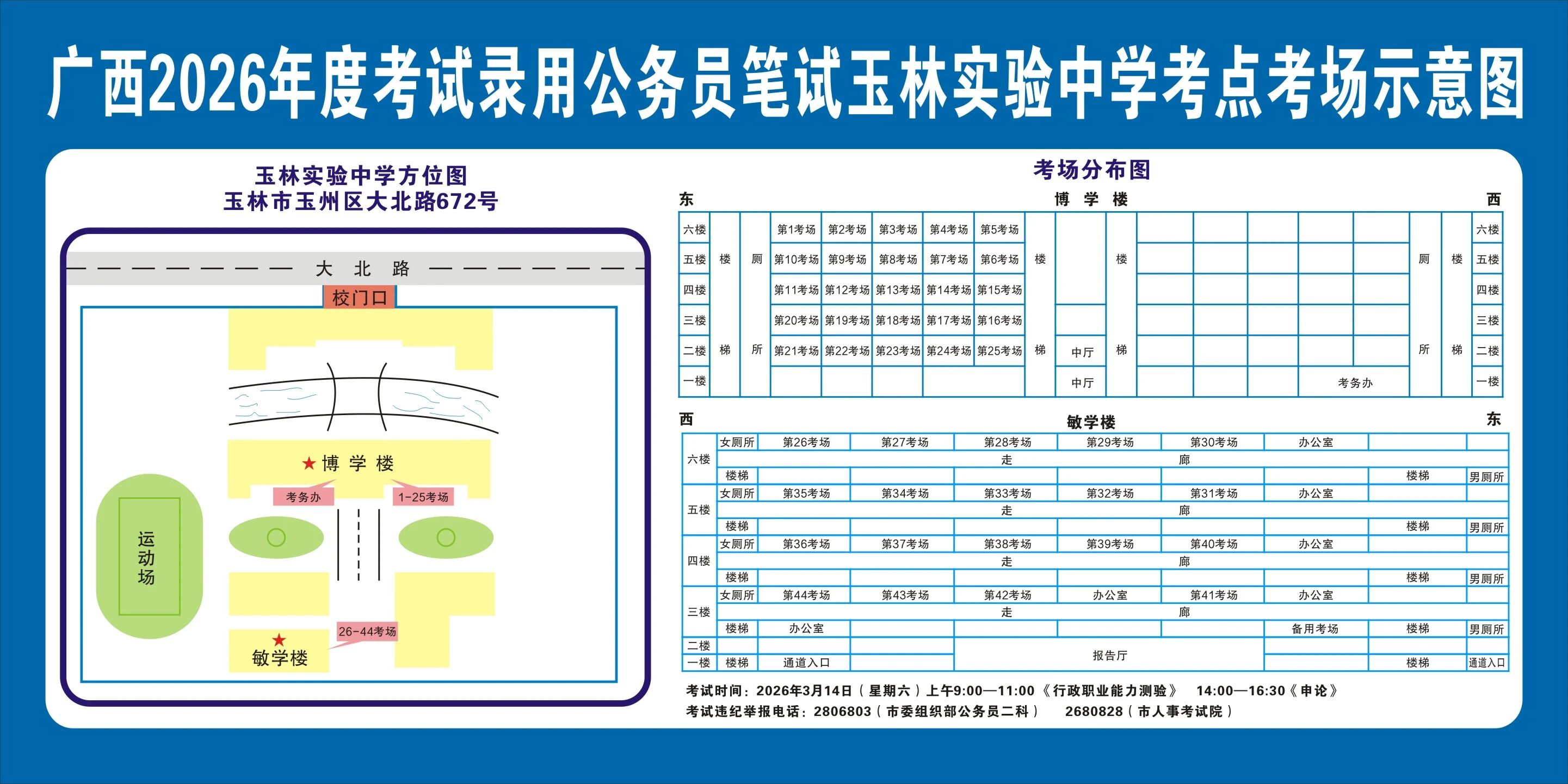 廣西2026年度考試錄用公務(wù)員(選調(diào)生)筆試將于3月14日舉行,為進(jìn)一步提升玉林考區(qū)服務(wù)保障質(zhì)量,現(xiàn)就有關(guān)注意事項(xiàng)提示如下,請(qǐng)廣大考生做好應(yīng)試準(zhǔn)備工作,準(zhǔn)確掌握考試時(shí)間、考點(diǎn)地址及相關(guān)注意事項(xiàng)。